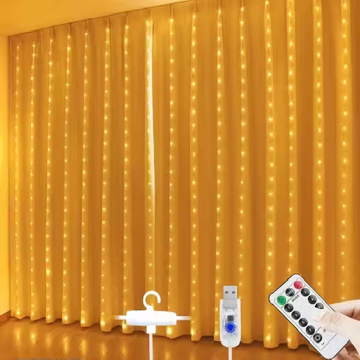 📦 Package Includes: 1 x 3x3 Meter Curtain Light (300 LEDs), 1 x Remote Control